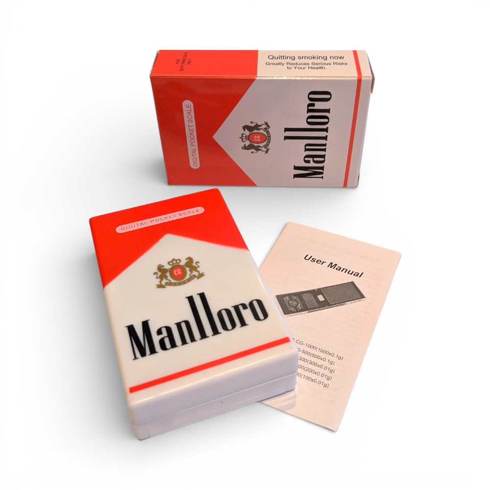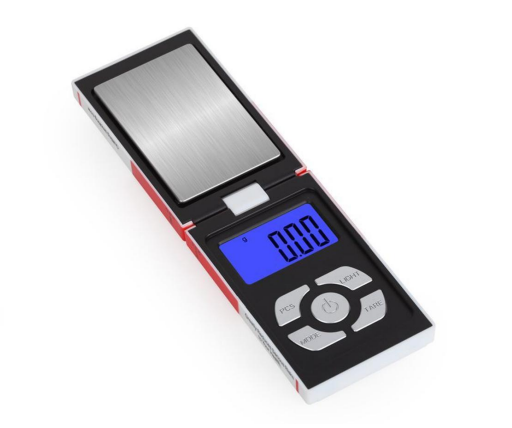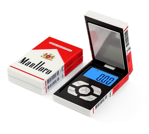 Lurevekt med røykpakke design som veier opp til 200 gram med 0.01g presisjon. Digitalvekten har blått baklys for enkel avlesning av tall. Størrelse på vekten er 9 x 5.5 x 2 cm. Størrelse på veieplattform er 7.2 x 4.5 cm. Vekten bruker 1x CR2032 batteri.