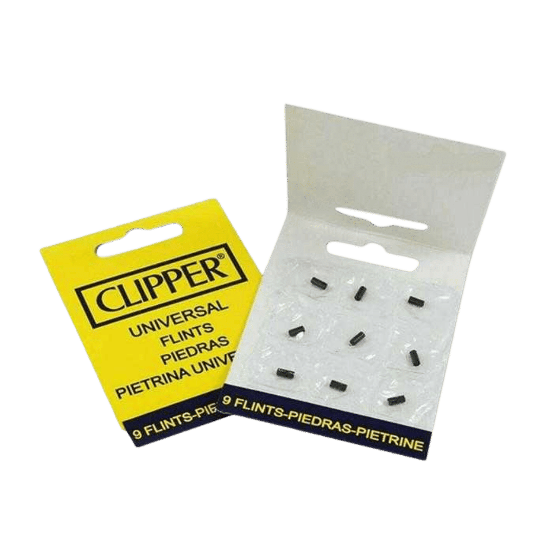 Clipper Flints – 9 stk er originale flinter designet for å gi nytt liv til din Clipper-lighter. Når gnisten begynner å bli svak eller forsvinner helt, er det enkelt å bytte stein og få lighteren til å fungere som ny igjen.