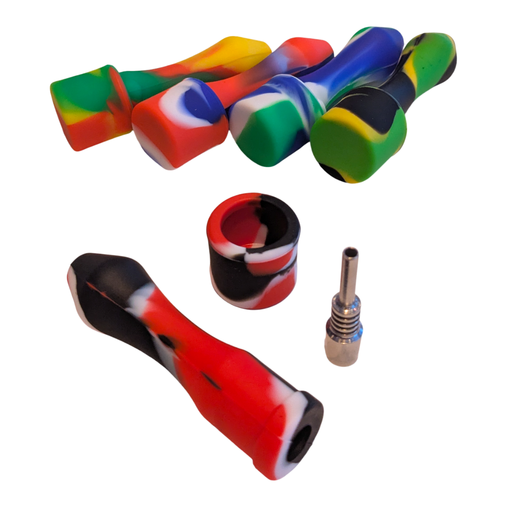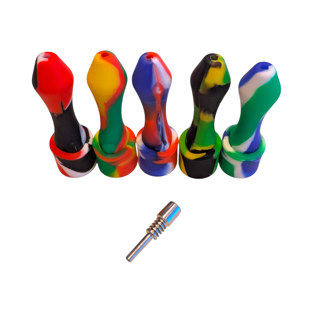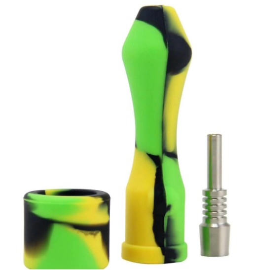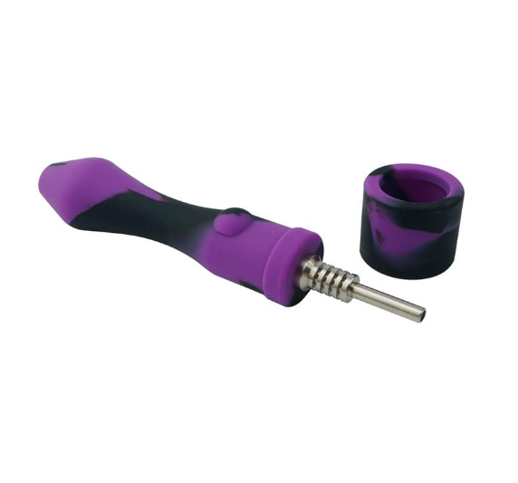 Silikon nectar collector med. Collector i rustfritt stål med 4 cm lengde. Lengde på silikondelen er 8.5 cm og den har en diameter på 25 mm.