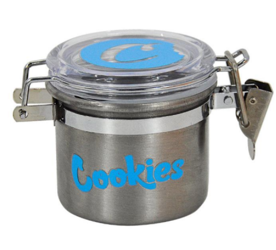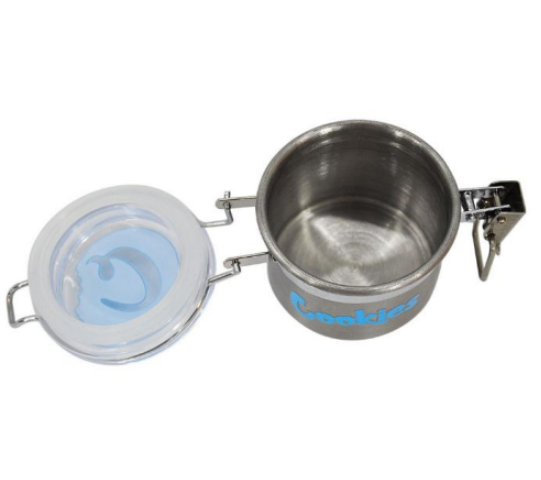 Lufttett beholder i rustfritt stål fra Cookies. Størrelse på beholderen er 5.5 x 5.5 cm.