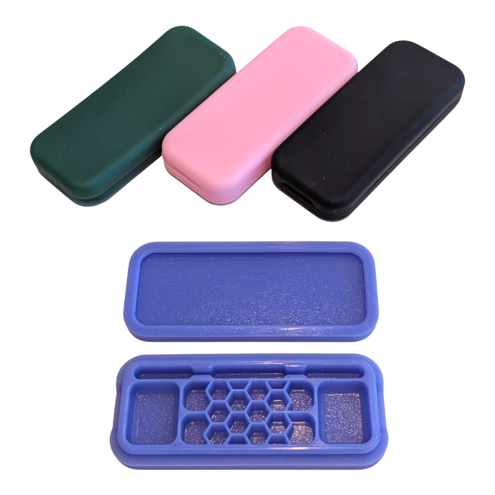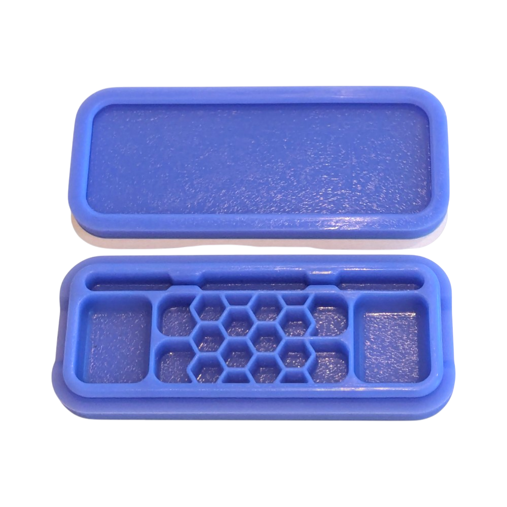 Honeybee silikonbeger for praktisk oppbevaring av oljer etc. Mange rom av forskjellige størrelser, samt dedikert rom for dab tool. Størrelse på begeret er 10.2 x 4.4 x 1.8 cm.
