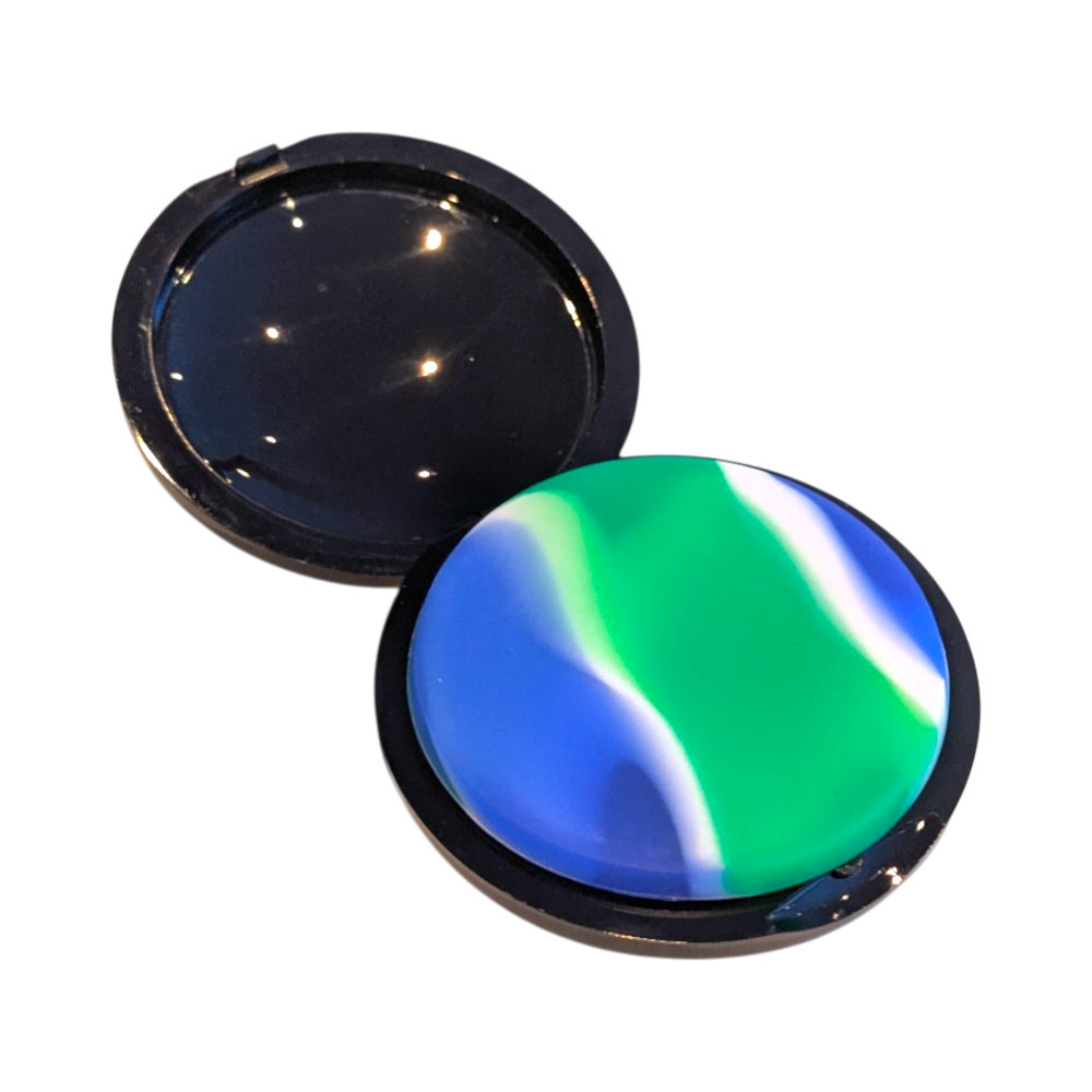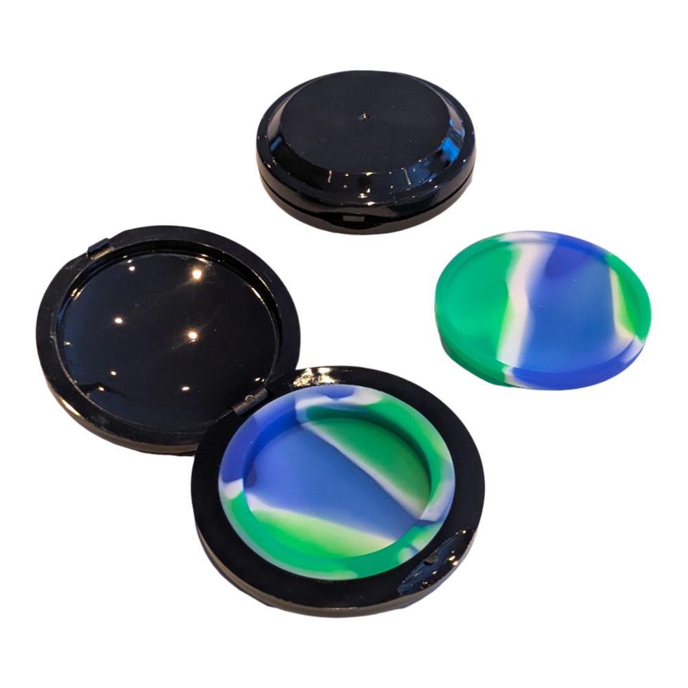 Silikonbeger med kamskjell design for oppbevaring av oljer etc. Begeret har diameter på 58 mm og en høyde på 2 cm. Sort farge.