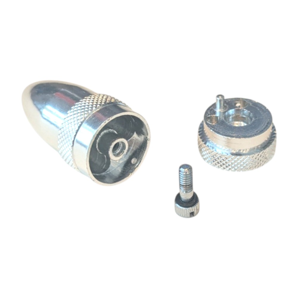 Posh dispenser i polert aluminium. Dispenseren har sølv farge.