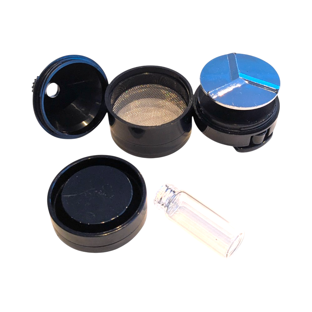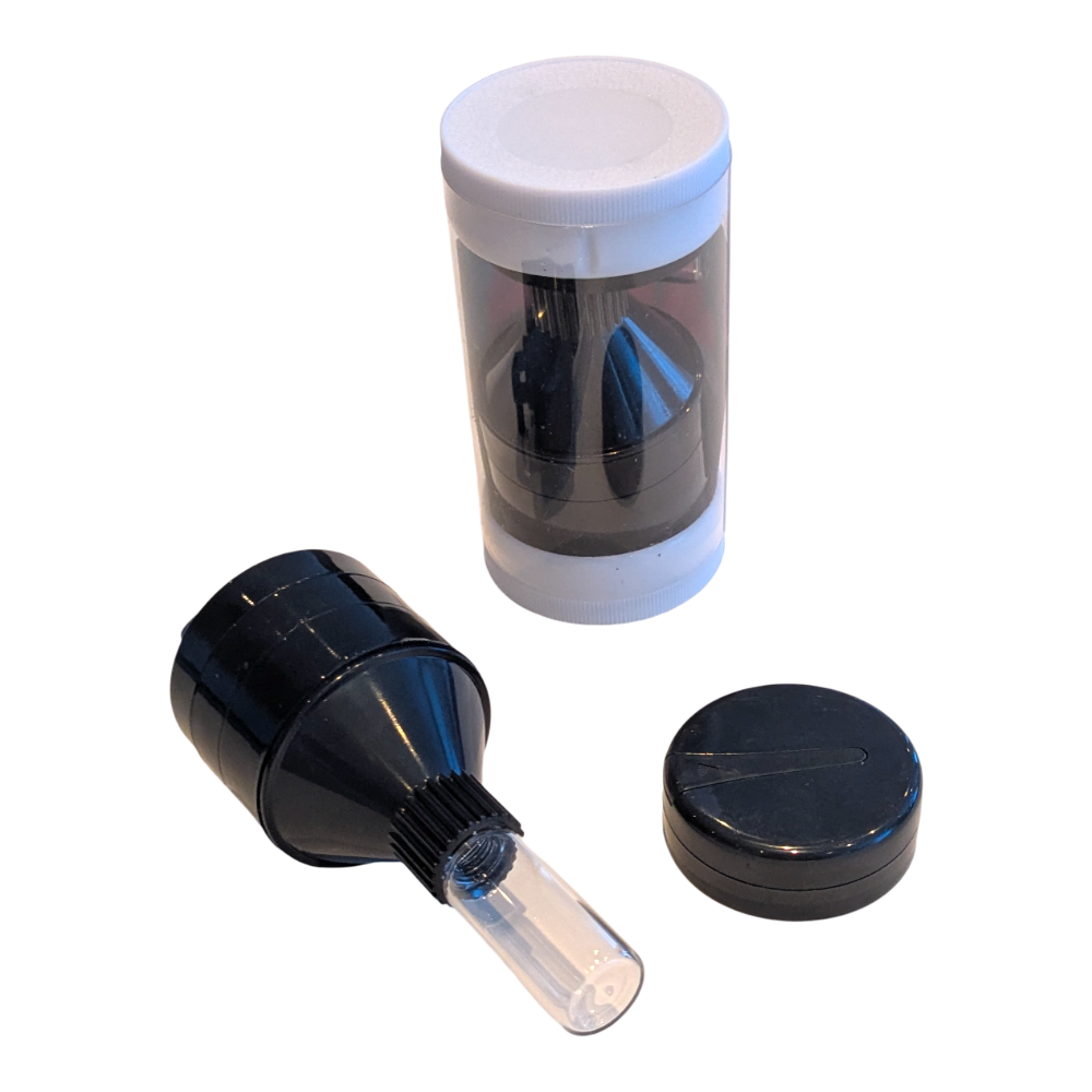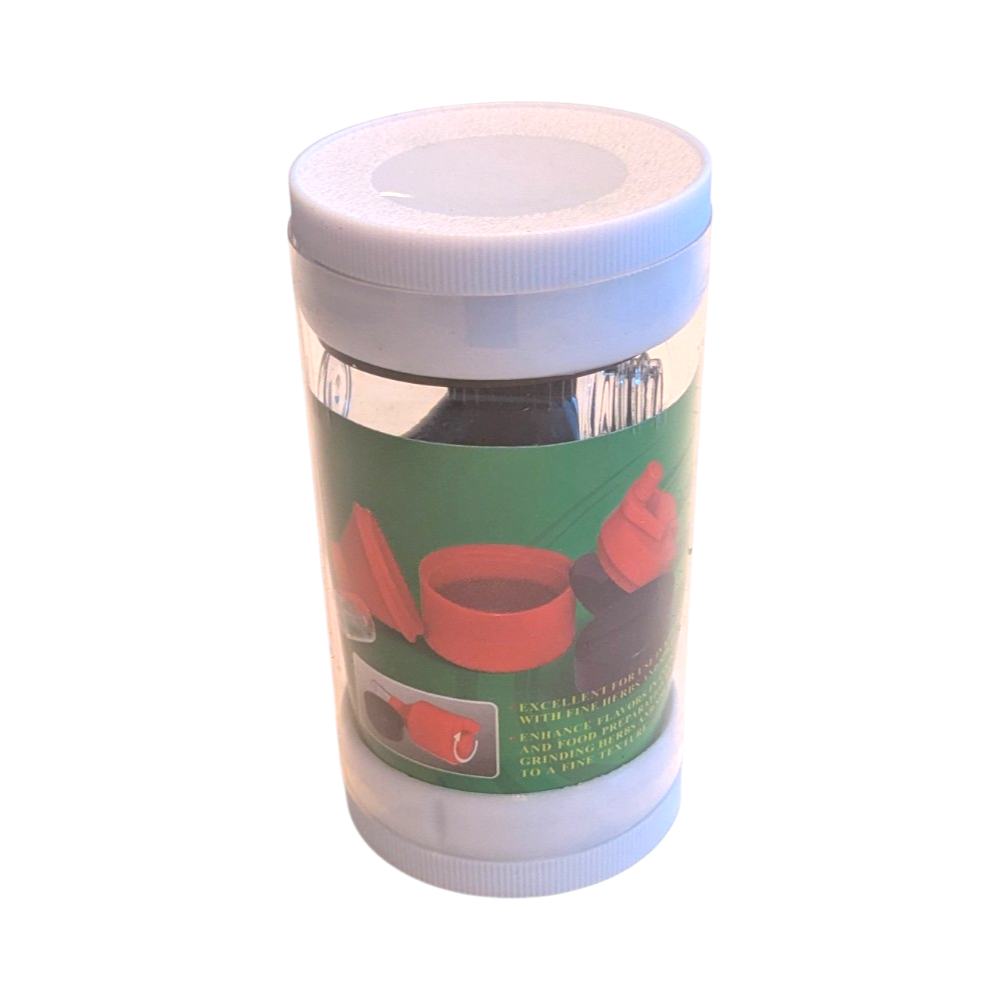Pulvergrinder for fin kverning. Kan brukes direkte på glassbeholder/dispenser eller medfølgende boks for oppsamling. Diameter på grinderen er 40 mm og den har en høyde på 7 cm. Kommer i praktisk beholder for oppbevaring. Inkludert 1 stk. glassbeholder.