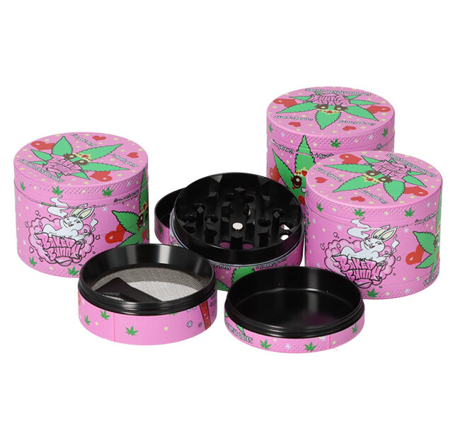 Baked Bunny metallgrinder med 4 deler. Grinderen har magnetisk topplokk og pollenrist for oppsamling av støv. Diameter på grinderen er 50mm. Det følger med grinderskrape. Kommer i 3 assorterte motiver. Skriv evt. ønske i kommentarfeltet og vi sender hvis tilgjengelig.