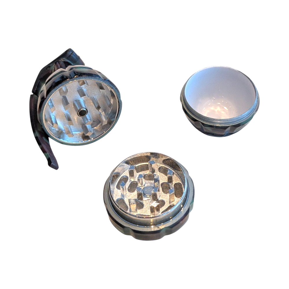 Granat metallgrinder med 3 deler. Grinderen har pollenrist for oppsamling av støv og magnetisk topplokk. Diameter på grinderen er 40 mm og den har en høyde på 7.5 cm.