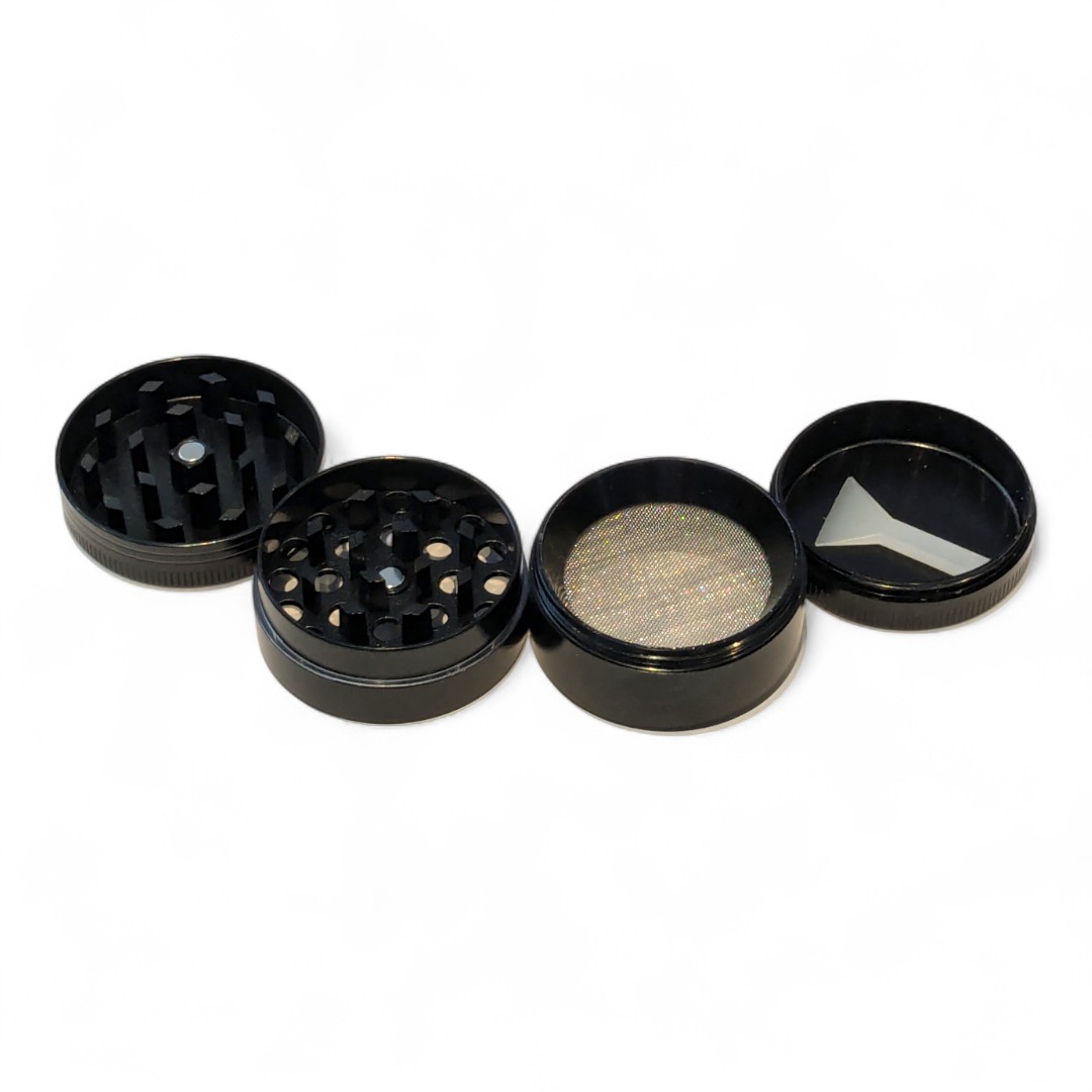 Sort Shady Jr. metallgrinder med 4 deler og magnetisk lokk. Grinderen har pollenrist for oppsamling av støv. Diameter på grinderen er 40mm og den har en høyde på 38mm. Grinderen har nylonring for enkel friksjon og det følger med en grinderskrape.