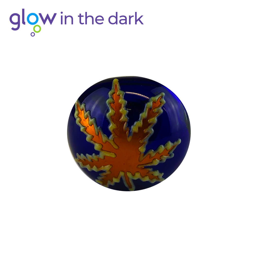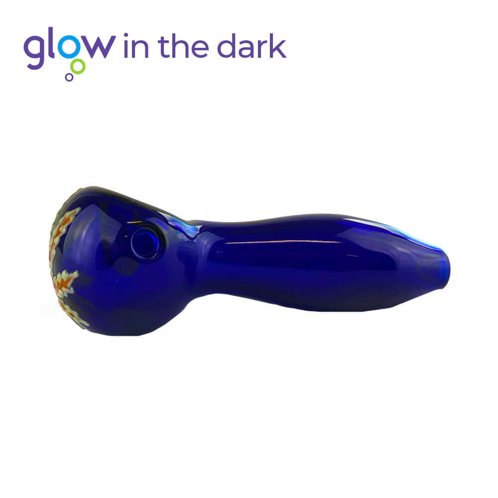 Tøff blå glasspipe fra Urban Crew med glow in the dark leaf logo. Lengde på glasspipen er 10 cm. Glasspipen har choke for ekstra trekk.