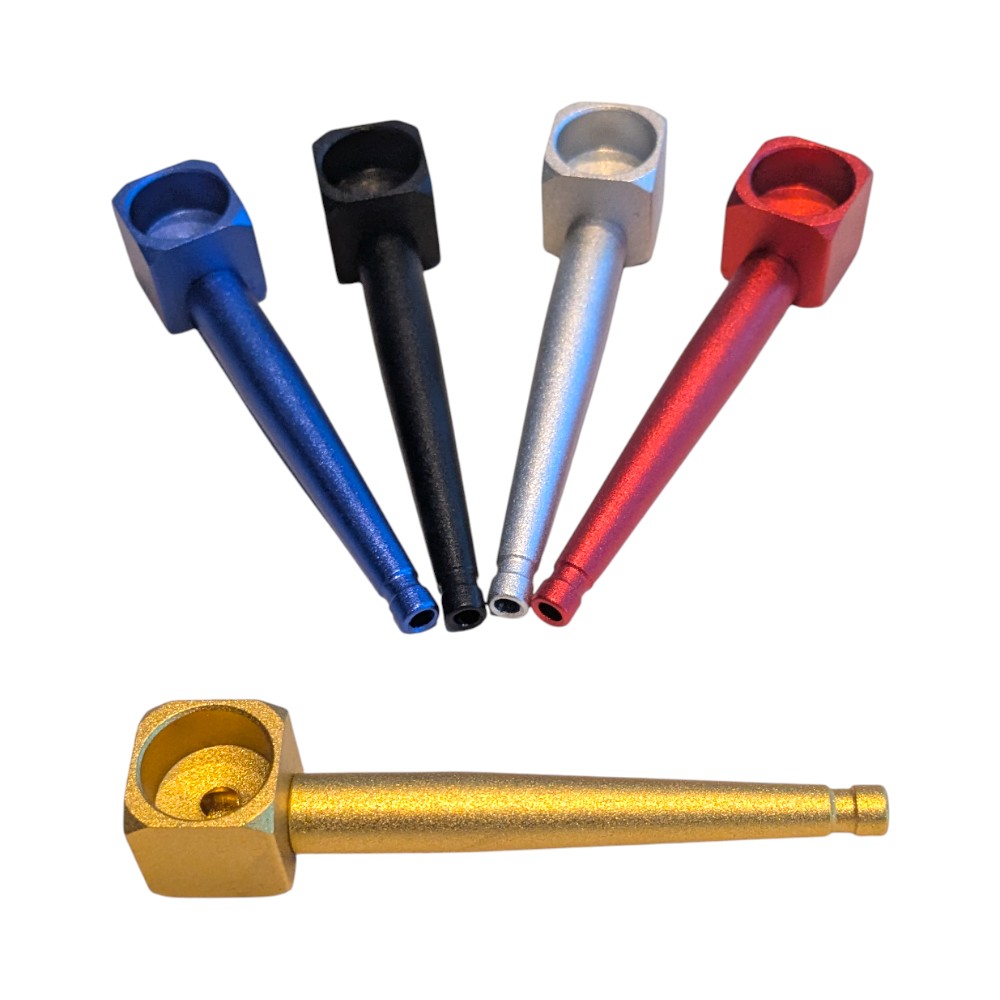 Pan metallpipe med avtagbar brønn for enkel rengjøring. Lengde på pipen er 9 cm.