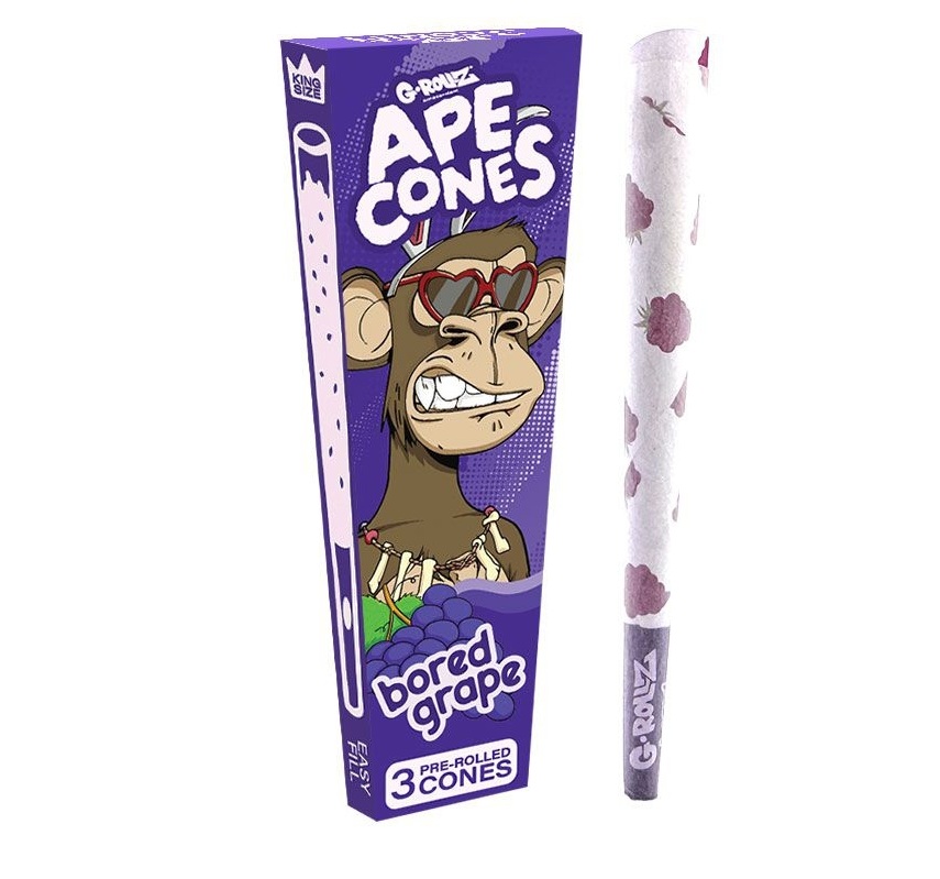 Bored Grape Ape Cones fra nederlandske G-Rollz Amsterdam. Det er 3 stk. king size cones med smak i pakken.