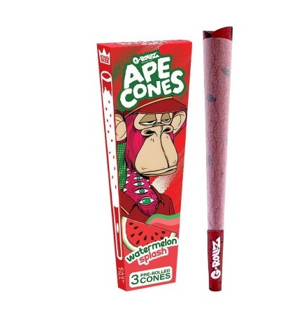 Watermelom Splash Ape Cones fra nederlandske G-Rollz Amsterdam. Det er 3 stk. king size cones med smak i pakken.