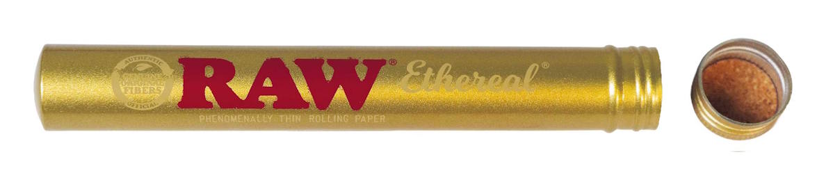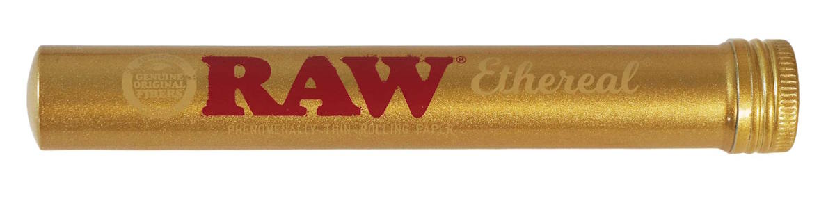 King size joint tube av aluminium fra RAW. Størrelse 11,6 x 1,5 cm. Gold Ethereal versjon.