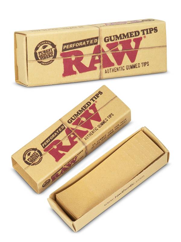 RAW Gummed Filter Tips er klassiske ublekede filter tips med en praktisk limkant som gjør dem enklere å forme og feste. Den gummierte kanten aktiveres lett og hjelper filteret med å holde formen under rulling.