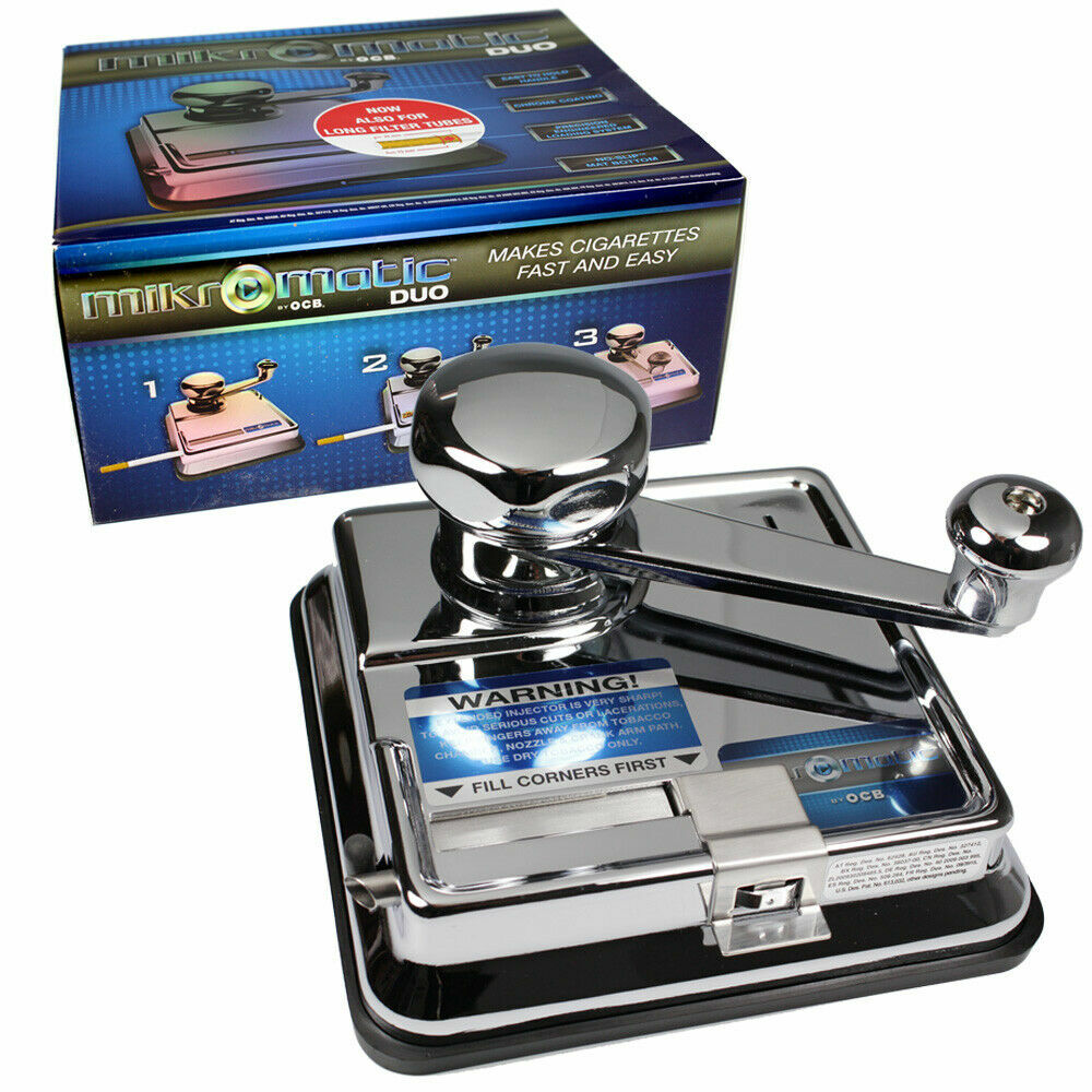 OCB MikrOmatic Duo Rullemaskin er en robust og presis rullemaskin i metall, utviklet for deg som ønsker perfekt rullede sigaretter – hver gang. Duo-utgaven gjør det mulig å rulle både Regular (70 mm) og King Size (110 mm) med én og samme maskin. Den solide metallkonstruksjonen gir jevn motstand, lang levetid og et profesjonelt resultat, enten du ruller hjemme eller tar den med på farten.